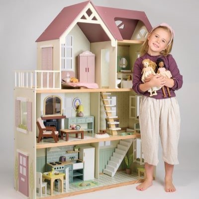 Imponująca, trzypiętrowa posiadłość z poddaszem, balkonem i pełnym wyposażeniem. Każde pomieszczenie można dowolnie zaaranżować – a dzięki dużej skali zmieszczą się w nim także większe lalki. Idealne miejsce do długich, narracyjnych zabaw.